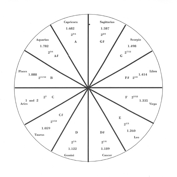 If we make a circle of a twelve-pitch scale so that it is a pie cut into twelve equal pieces, it looks like a zodiac.